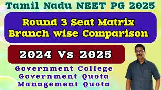 Round 3 Seat Matrix Branch wise Comparison | 2024 Vs 2025 | NEET PG | Government and Private College